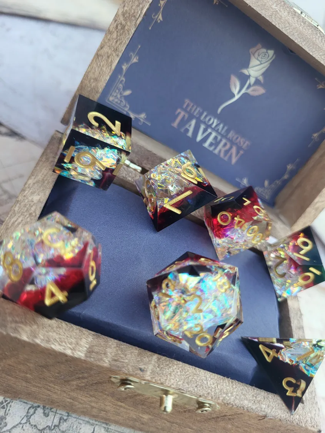 - A complete set of 7 polyhedral dice—perfect for D&D, Pathfinder, and all your favorite RPGs.